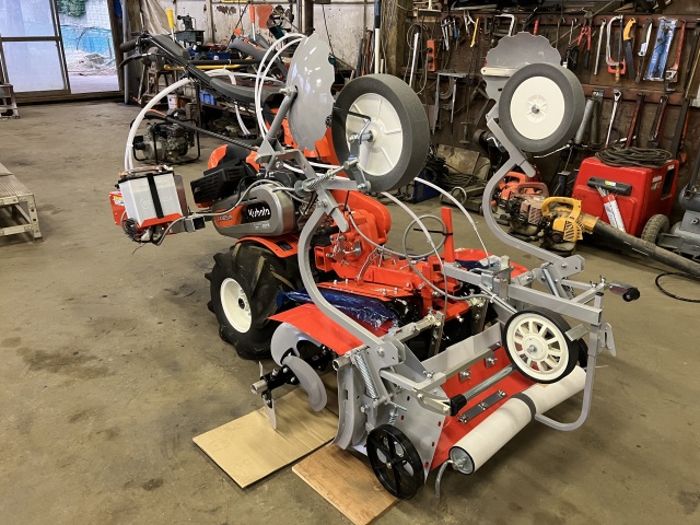 管理機、成形機、ロータリー、土壌消毒器とすべてばらばらの状態で届くため組み立てに時間がかかりましたが、ようやく組みあがりました。実物は写真よりかなり大きくて迫力あります!