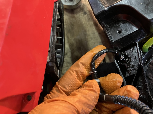 オイルポンプ、オイルラインを分解して点検した結果、オイルポンプとオイルラインの曲がりが原因でした。部品交換して組付けた後チェーンオイルの吐出も確認できましたので修理完了です。