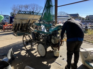 N先輩が田植え機の整備中です。